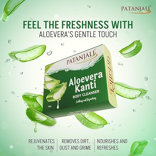 Patanjali Aloe Vera Kanti Body Cleanser Soap for Men and Women(150g, Pack of 3), Nourishing & Moisturizing, Natural Aloe Vera Soap for Soft Skin